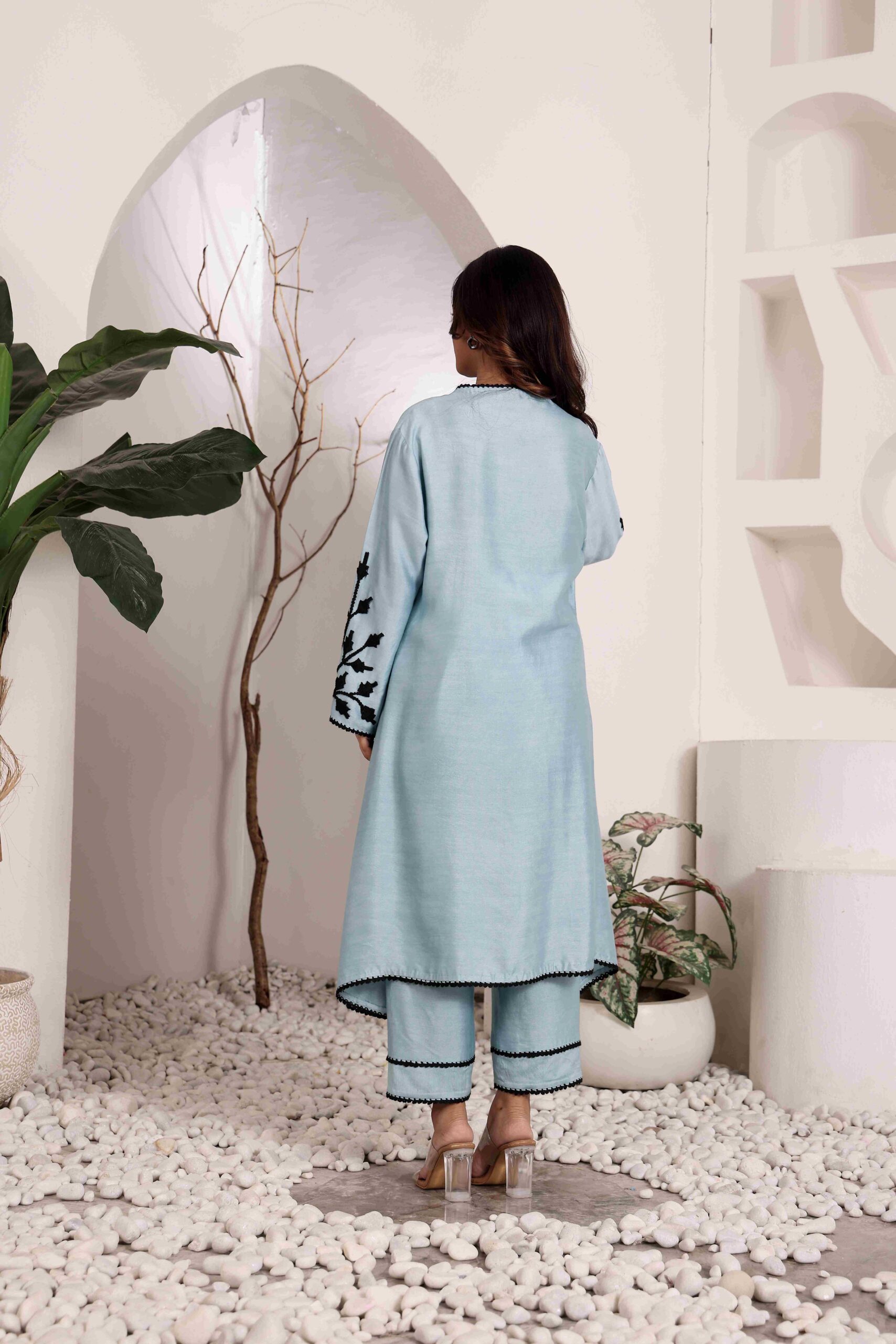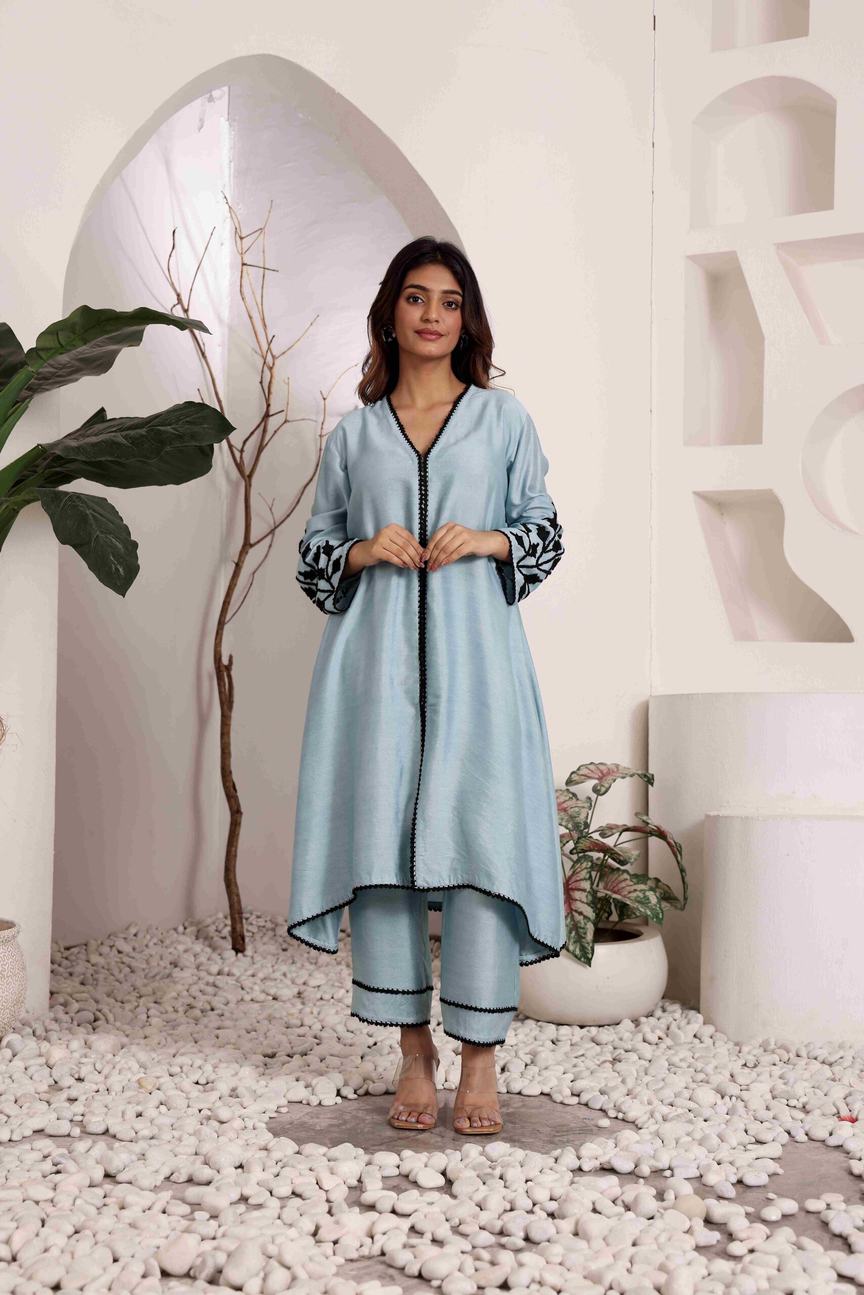 Be the first to review “Silk Chanderi Hand Embroidery and crochet suit set”