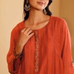 Nargis_Mulchanderi Crochetta work Dupptta with hand Embroidry kurta set
